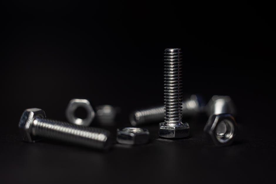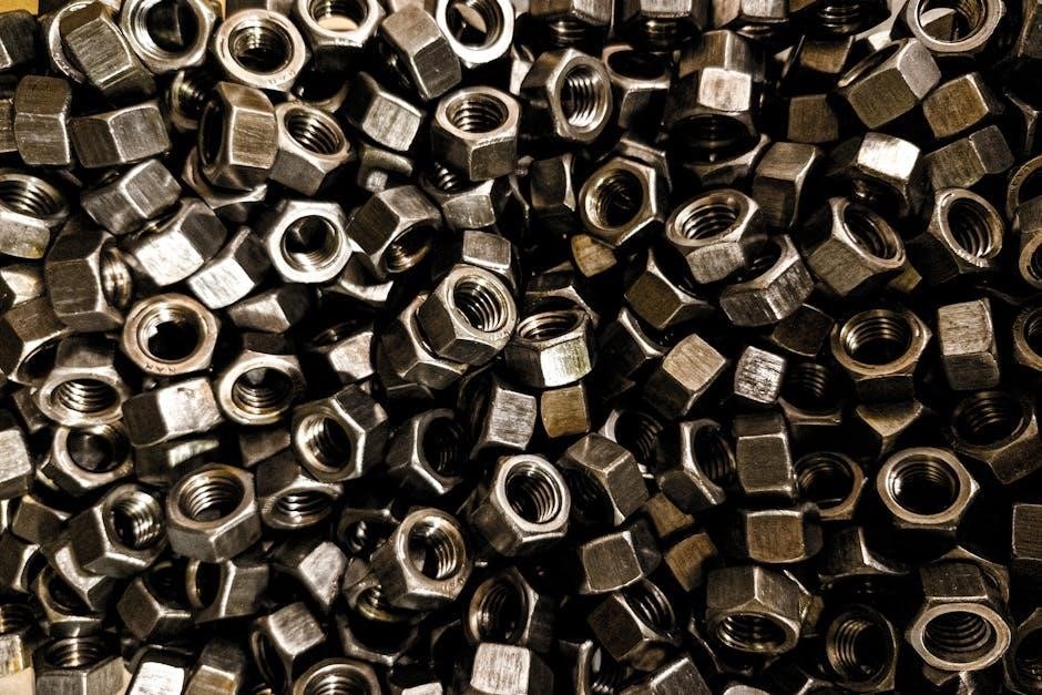 Bolt and nut size charts are essential guides detailing dimensions for fasteners, often available as a PDF. These charts correlate metric and imperial sizes, aiding in precise component assembly.
